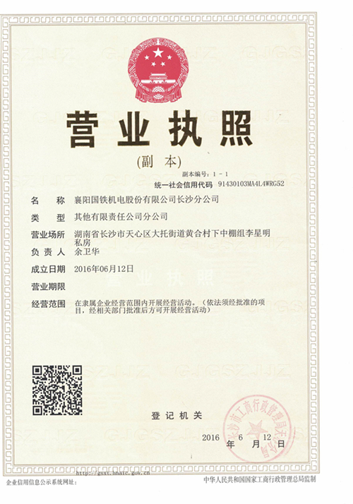Business Licence (Changsha branch )