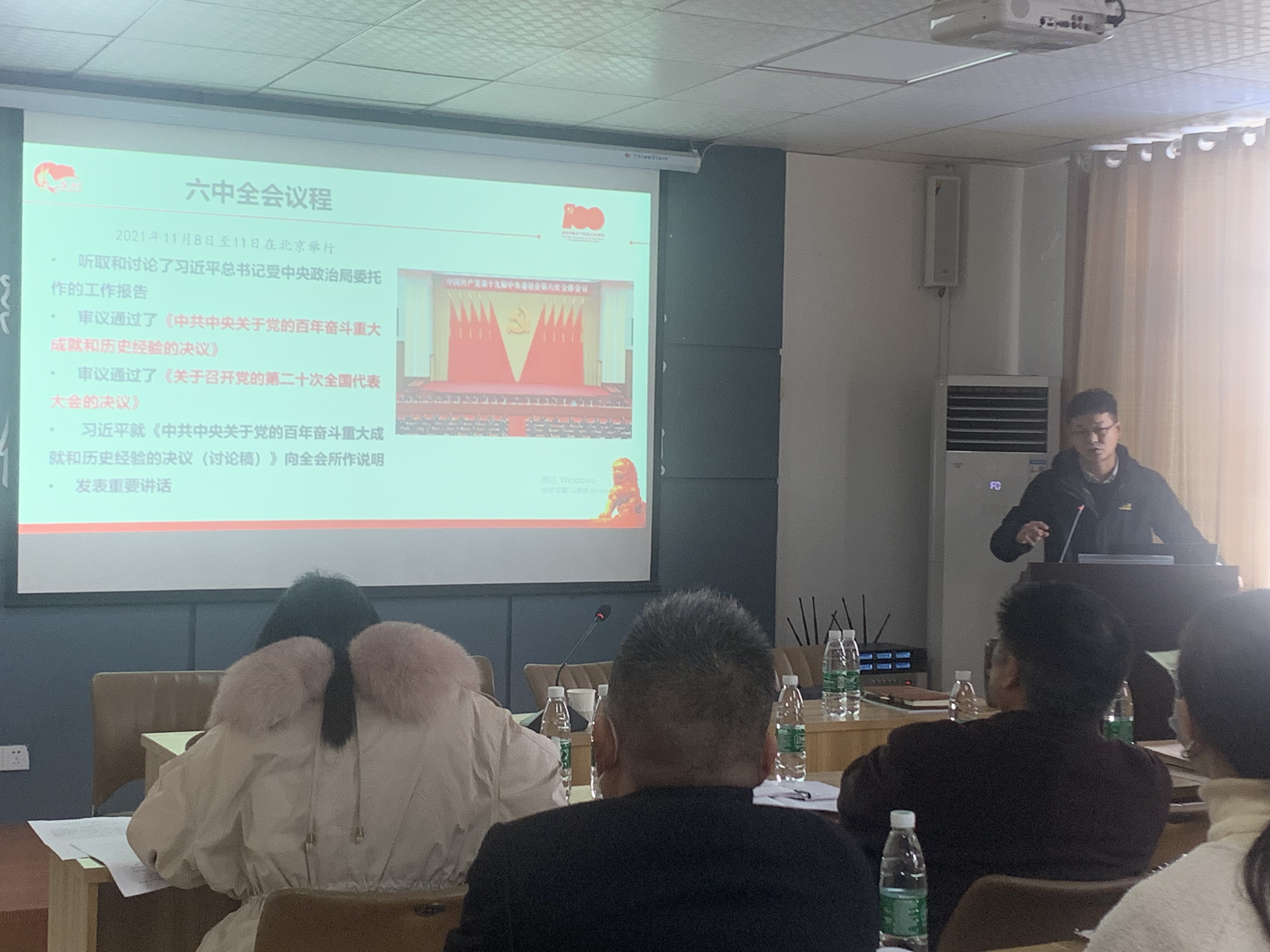 會(huì)議主要任務(wù)是認(rèn)真學(xué)習(xí)黨的十九屆六中全會(huì)精神,總結(jié)2021年黨建工作成績,安排年末和2022年園區(qū)黨建工作。會(huì)議結(jié)束后,緊接著請(qǐng)襄州區(qū)委黨校知名講師王拓進(jìn)老師講授黨課。